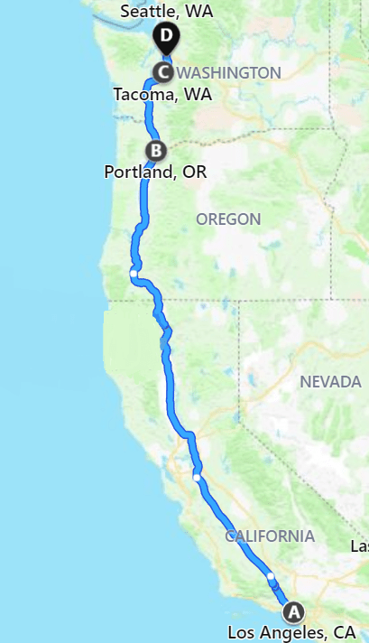 We also work this route going backwards! Starting in Seattle, ending in Los Angeles.
